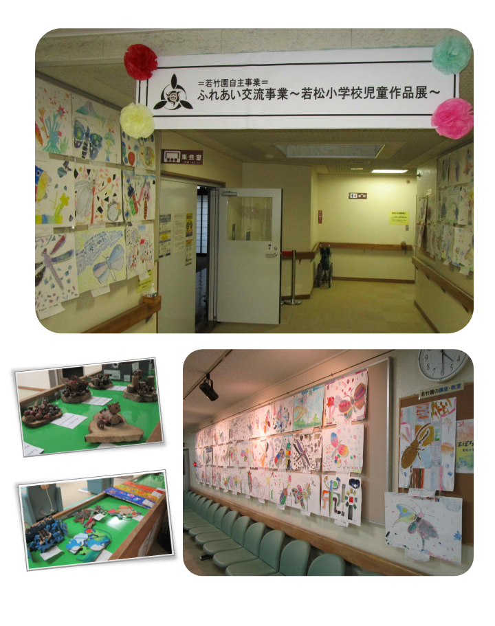 若松小学校児童の素敵な作品点(絵画62点、置物19点)を展示いたしました。