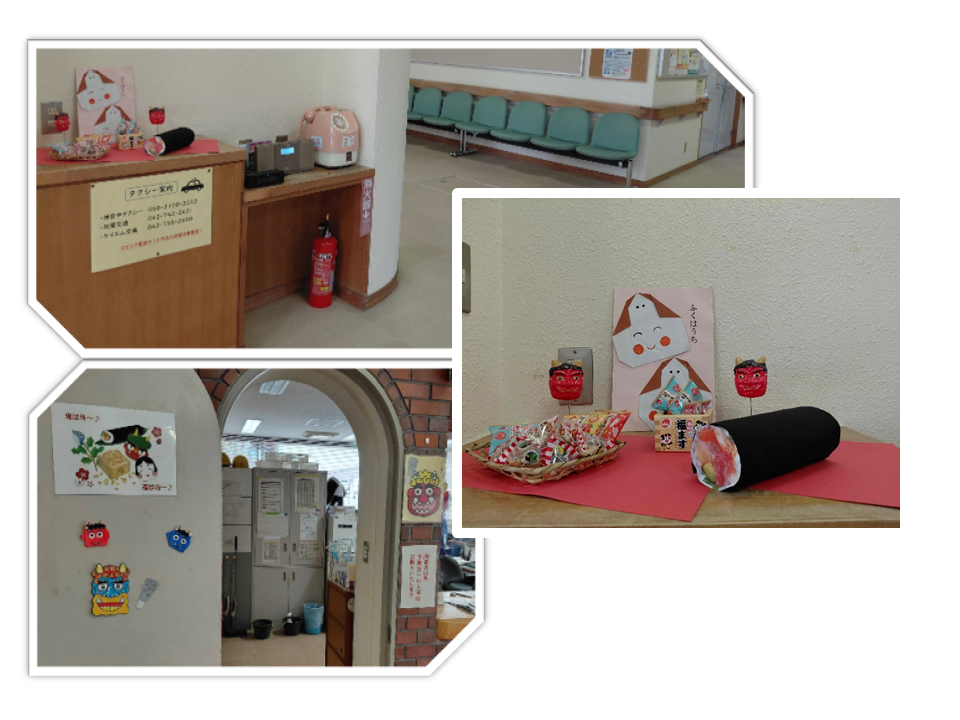若竹園でも飾りつけをいたしました。もちろん恵方巻もあります。