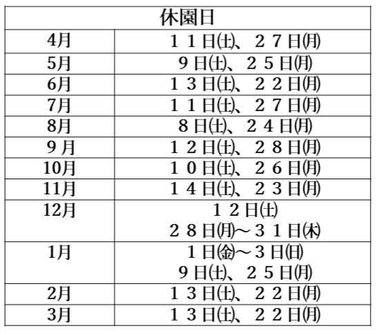 それに伴い、下記のとおり休園日を設けさせていただきます。